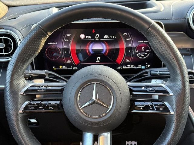 AMG Line IntérieurVous êtes assis au centre de l'action. Le volant sport multifonction en cuir Nappa aplati dans sa partie inférieure et le pédalier sport AMG en acier inoxydable brossé soulignent le caractère dynamique de la voiture. De la planche de bord en finition Nappa aux inserts décoratifs en métal structuré, vous profitez d'une atmosphère qui vous place au centre de l'attention.