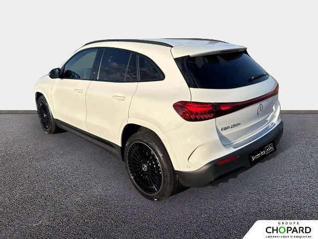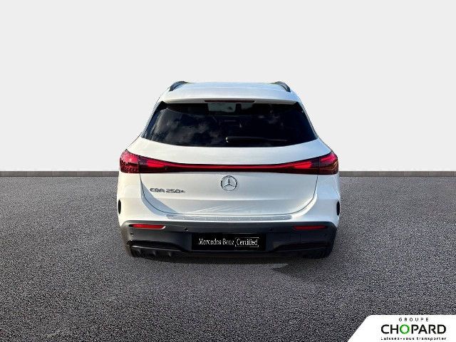 Equipement de série pour Mercedes-Benz EQA 250+Membre incontournable de la famille 100 % électrique Mercedes-Benz : à l'extérieur, l'EQA se caractérise par sa calandre Black-Panel, son bandeau lumineux à l'avant et à l'arrière ainsi que par des éléments bleus dans les phares à LED. A l'intérieur, le système multimédia MBUX intelligent indique le chemin vers la prochaine borne de recharge.