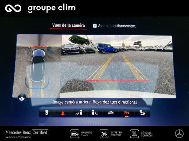 Pack stationnement avec caméras panoramiquesL'assistant de stationnement actif avec PARKTRONIC et caméras panoramiques détecte les places de stationnement libres ainsi que les places marquées en passant. Après avoir sélectionné une place de stationnement, vous pouvez vous garer en toute confiance grâce à la visualisation dynamique et au retour sonore – ou vous faire assister dans vos manœuvres de stationnement.