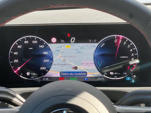 Navigation MBUX Premium Avec MBUX Navigation Premium, vous atteignez votre destination plus rapidement tout en étant parfaitement informé. Vous pouvez notamment compter sur des données cartographiques actualisées, y compris une vue satellite, des informations précises sur le trafic en temps réel et un guidage routier rapide en ligne. Des fonctions intelligemment interconnectées rendent votre voyage encore plus sûr.