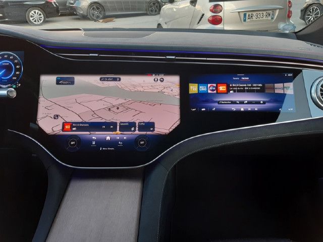 Hyperscreen MBUXMettez votre habitacle en valeur avec un élément de design impressionnant. Trois écrans se fondent impeccablement sous une surface vitrée pour former un hyper-écran MBUX. Les écrans OLED brillants avec retour haptique et l'interface utilisateur innovante Zero-Layer créent une expérience d'utilisation particulièrement confortable.