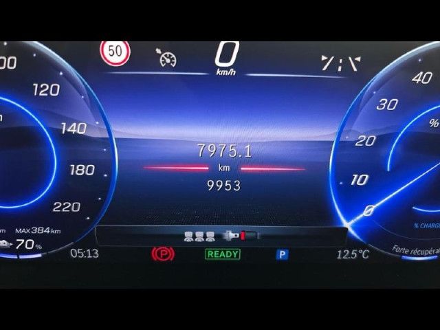 L’impact de l’état de santé (“State of Health”) sur l’autonomie maximale est calculé à partir de l’énergie utilisable de la batterie et de la consommation énergétique moyenne. La consommation d’énergie est influencée par le style de conduite et l’utilisation d’autres consommateurs auxiliaires tels que le chauffage ou la climatisation. Pour plus d’informations sur l’état de santé mesuré, veuillez demander à votre partenaire Mercedes‑Benz Junge Sterne le certificat de test de batterie original.[13]