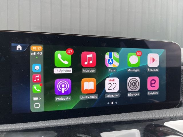 Intégration pour smartphoneL'intégration pour smartphone connecte sans fil le téléphone portable au système multimédia MBUX via Apple CarPlay™ et Android Auto™. Vous pouvez ainsi accéder en tout confort aux principales applications de votre smartphone. Il est même possible d’utiliser rapidement et facilement des applications de fournisseurs tieres (Spotify, par exemple).